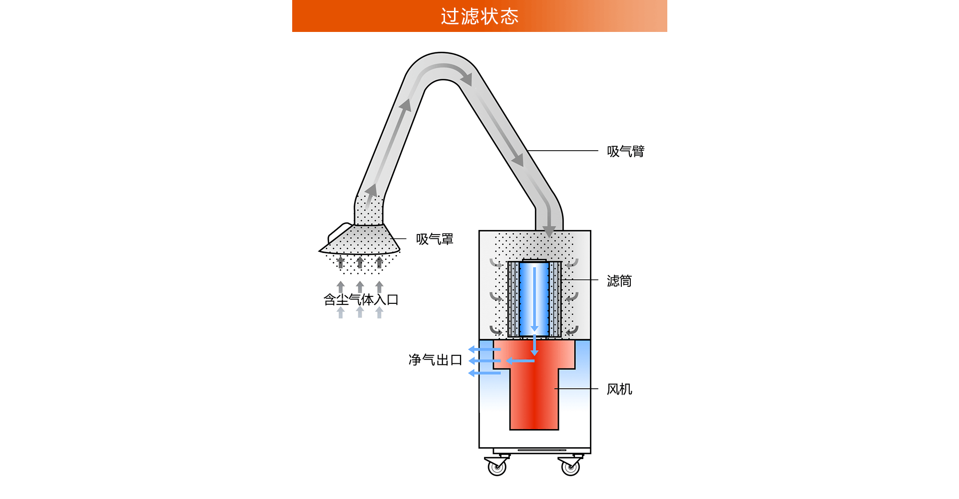 采用垂直安裝快裝式濾芯,方便濾芯的拆裝和維護,濾芯采用進口高效阻燃覆膜濾料,過濾精度高達99.99%,過濾后的潔凈氣體可有效循環。